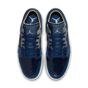 The Air Jordan 1 Low SE Craft ‘Inside Out – Obsidian’ takes a collage of materials and mismatched designs, combining ballistic mesh, patent leather, smooth leather, and suede all in shades of blue. Obsidian blue patent leather toebox pairs perfectly with the French Blue ballistic mesh mudguard and suede eyestay. Other colors featured are grey on the upper part of the eyestays and deep blue Jordan Wings logo at the heel. Finishing touches include a white AJ 1 midsole juxtaposed against a grey rubber outsole for a unique look. Step up your style game in this vibrant yet professional sneaker made for Air Jordan 1 enthusiasts everywhere.