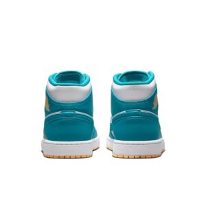 The Air Jordan 1 Mid ‘Aquatone’ is a stylish and modern sneaker that is perfect for everyday wear. Featuring a full leather upper with mesh tongue and lining, the sneaker has a white base with a water blue overlay and Swooshes logo. The brand and rubber outsole are finished off with a peachy hue. Inspired by the classic Air Jordan 1 silhouette, this sneaker is sure to turn heads. Perfect for casual or streetwear, the Air Jordan 1 Mid ‘Aquatone’ is a must-have for any sneakerhead.