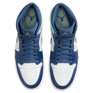 Introducing the Air Jordan 1 Mid ‘Blue Mint’, a fashionable and comfortable shoe for any active lifestyle. This mid-top version of the original Air Jordan 1 features stunning design elements that will have you feeling like royalty on your feet. The striking combination of royal blue and mint green not only looks great but speaks to the bold, confident style of sports enthusiasts everywhere. The striking Nike swoosh symbol and Air Jordan logo in blue are strategically placed to provide an eye-catching detail all around the foot. The white leather base with perforated toe box and bright blue and mint leather overlays creates a textural difference that also grabs attention. Lastly, light robins egg blue laces on top of a soft blue tongue add another layer of pizzazz to this already regal design. The traditional tread found on Air Jordan models provides the reliable durability needed for any activity while the bright mint sole and white midsole offer additional support so you can stay active in style. With the stylish good looks and long-lasting comfort, the Air Jordan 1 Mid ‘Blue Mint’ brings fashion and function together in perfect harmony making it ideal for anyone with an active life!