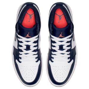 The Air Jordan 1 Retro Low ‘Obsidian Ember Glow’ is a classic basketball sneaker that was first released in 1985. Inspired by the popular AirForce 1 of the time, it features a reduced midsole thickness for a lighter weight and improved ground feel. The iconic wings logo and Air Sole cushioning in the heel provide a stylish and comfortable fit. The obsidian and ember glow upper is contrasted by white leather at the toe and ankle, and the heel is finished with a colorful ball and wings logo. Perfect for the court, this sneaker is a timeless classic.