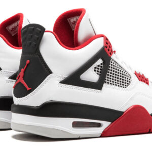 The Nike Air Jordan 4 Retro ‘Fire Red’ 2012 is a sneaker that’s based on the classic 1989 White/Fire Red OG colorway. This updated version features a white leather upper, with Fire Red and black accents, and an icy blue outsole. The result is a sneaker that’s both stylish and comfortable, perfect for everyday wear. The Sneaker also features Jumpman branding at the tongue and heel, making it a must-have for any Air Jordan fan.