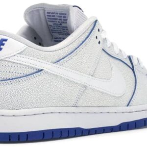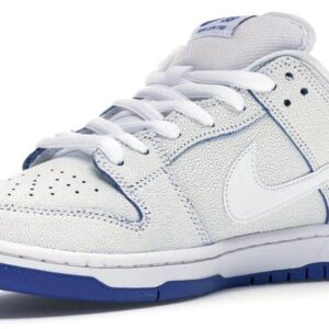 Nike SB Dunks have been a go-to skate shoe since the early 2000s. The Nike SB Dunk Low Pro PRM is a modern take on a classic design. The premium cracked leather construction is durable and comfortable, while the smooth leather Swoosh branding adds a touch of style. A padded tongue and Zoom Air unit in the sockliner provide cushioning and support, while the white midsole and Game Royal rubber outsole offer durability and grip.