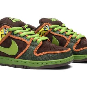 The Nike SB Dunk Low ‘De La Soul’ is a killer remix of the 2005 high-top colorway. This low-top version features a Baroque Brown suede upper with Altitude Green elephant print and vinyl graphic overlays inspired by the cover of De La Soul’s debut album 3 Feet High and Rising. The green midsole and brown outsole add the perfect finishing touches to this sick sneaker. Released in May 2015, the Nike SB Dunk Low ‘De La Soul’ is a must-have for any self-respecting sneakerhead.