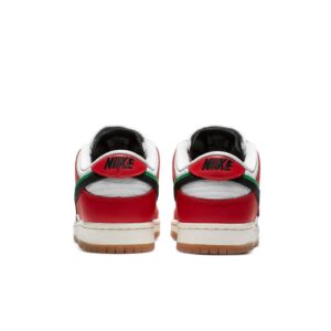 Introducing the Nike Frame Skate x Dunk Low SB “Habibi”! This special edition shoe was created in collaboration with Dubai retailer Frame Skate, and is a must-have for any sneakerhead. The upper is constructed of premium leather and textile, with a white base and Chile Red overlays. The iconic Nike Swoosh is done in black and Lucky Green, to perfectly represent the colors of the UAE flag. The stacked tongues feature an oyster tag and “Habibi” on the inside tongue, with the removable external tongue sporting a tonal falcon graphic on the tag. This limited edition shoe is sure to turn heads, so don’t miss your chance to add it to your collection today!