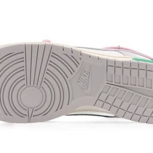 LIMITED TO 50 PAIRS ONLY! The Nike OFF-WHITE x Dunk Low The 50 NO.9 belongs to the exclusive “Dear Summer” collection, which is a follow-up to Virgil Abloh’s highly successful first Nike Dunk collaboration from 2019. This low-top sneaker is made with white leather upper and soft grey canvas overlays, along with Virgil Abloh’s signature flourishes like a plastic zip tie and printed Helvetica text. It also has contrasting pops of color from the secondary lacing system, zip-tie, an exposed-foam tongue and a rectangular tab on the Swoosh.