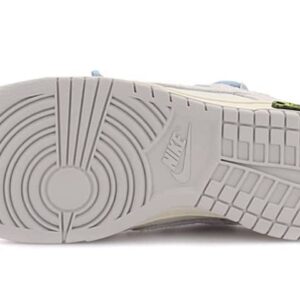 The OFF-WHITE x Nike Dunk Low The 50 NO.38 is a limited edition sneaker collaboration between Virgil Abloh’s OFF-WHITE label and Nike. It features a white leather upper with soft grey suede overlays, as well as Virgil’s signature touches like the plastic zip tie and printed Helvetica text. Contrasting pops of color arrive via the sneaker’s secondary lacing system, zip-tie, exposed-foam tongue and rectangular tab affixed to the Swoosh.