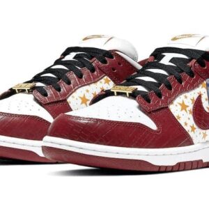 The Nike SB Skateboard Dunk Low x Supreme is a special edition shoe that pays homage to the brands’ classic 2003 Dunk High collaboration. This limited edition shoe features a white leather upper, gold stars, flat black laces, and a gold Supreme lace jewel. The rich brown hue of the Barkroot Brown colorway is perfect for fall and winter skating. The Zoom Air unit in the heel provides responsive cushioning, making this one of the most comfortable skateboarding shoes on the market.