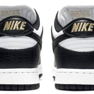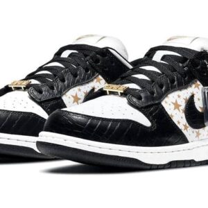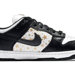 Nike SB and Supreme have teamed up once again to release a special edition skateboard shoe. The Nike SB Dunk Low x Supreme sports a white leather base with gold stars and contrast-colored overlays in croc-embossed leather. This low-top shoe also features gold Nike hits at the heel tab and woven tongue tag, as well as a gilded Supreme lace jewel. Inside the shoe, you’ll find custom Supreme and Nike SB branding on the sockliner, finished in a bold red hue. This shoe is fitted with a Zoom Air unit for lightweight cushioning, making it the perfect choice for skateboarding or just everyday wear.